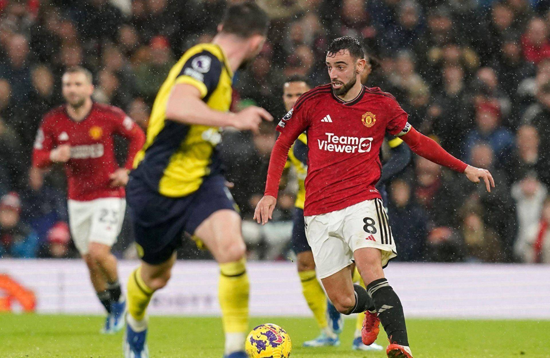 比赛伊始,曼联就展现出主场作战的侵略性。开场2分钟,B费禁区内抽射打在防守队员手臂上,主裁未作表示的判罚,为比赛埋下了争议伏笔。第8分钟,姆贝莫下底传中制造威胁,芒特的凌空抽射被对方门将奋力挡出,曼联错失改写比分的良机。